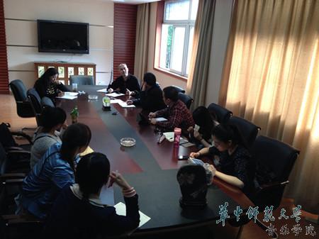 会议首先就传统音乐学会工作安排的具体内容与正在实施的进度做了汇报,并将筹委会已经完成的工作进行阶段性的总结,最终提出下月3号发出学会公告的决定。随后,臧艺兵院长就下一阶段的工作进行详细安排,内容具体到会议召开期间每一天的情况,对筹委会委员分派各自的详细任务。其中,臧艺兵院长与赵洪啸老师就2014年7月13日晚即将在华师音乐厅举办的“被发明的传统”主题音乐会中的具体节目进行了规划和安排,赵洪啸老师给出6个同时具有观赏性和紧扣音乐会主题的节目。本次工作会结束时,臧艺兵院长和吴凡老师特意叮嘱筹委会的几位主要委员,要求他们抓紧时间,加快进度,尽量把一切工作提前准备,以免临时“自乱阵脚”。