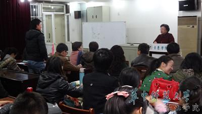 “世华声乐大赛组委会自成立以来,一直以发现华人歌唱新人才,力争与世界声大赛接轨为目标,为每一届大赛优胜选手提供包括赴欧美进修学习、舞台演出,甚至与国际音乐大家,如多明戈、谭盾等合作的宝贵机会,”任教授向在座师生宣传:“在2014年即将到来的第八届世华声乐大赛的舞台上,我们非常希望能看到来自武汉地区艺术高校,来自华中师范大学的参赛选手。我们期待看到的,是随时能站上舞台表演的、成熟的歌手,无论你是学生或者老师,原则上只要未满41岁,都可以参与。而且每一届比赛除了常设的优胜奖外,还会额外设置8个新秀奖,以表彰年轻的歌唱界新人。参加这样的国际大赛,最大的收获不是多么高的荣誉,而是引导参赛者,通过观摩不同风格、不同国别声乐演唱方式,认识到自己该‘怎样去歌唱’,懂得什么才是真正的亚洲音乐。”在之后的听众答疑环节,当在场学生问到“在当今声乐唱法多元化的大环境下,该如何选择适合自己的唱法”问题时,任教授认为,声乐业界人士不能只接受某一种对声乐的定义,人类声音的可塑性是极强的,应该跟着相应的作品走,并推荐学生去图书馆借阅相关书籍《美声唱法与艺术的歌唱》进行后期学习。
