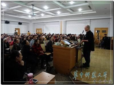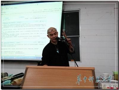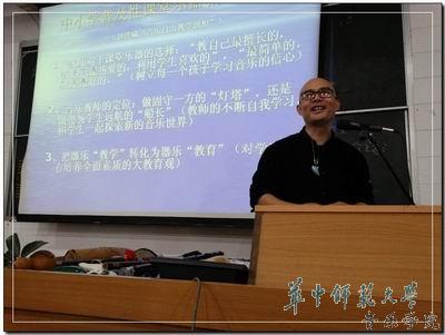 应河南洛阳师院音乐学院的邀请,华中师范大学音乐学院湖北省音乐教育实验教学示范中心赵洪啸老师于2013年11月18日为河南省参加“国培”的教师以及音乐学院共200多名师生讲授了一整天的相关“乐器进课堂策略”的专题报告,演示了数十种自制小乐器以及传统课堂乐器,提出对于乐器进课堂“最简单的就是最好的”基本策略,让孩子们无障碍地获得学习音乐学习乐器的信心和快乐。同时,赵老师也明确提出了关于音乐教师的人生定位等问题,希望音乐教师不要做传统意义上的“蜡烛”、“春蚕”、“灯塔”,而要做胸怀责任和善于终身学习的“船长”型音乐教师。 讲座中,应听课老师们的要求,赵老师还为大家介绍了坚持十年为各地贫困山区孩子们组织暑期自费支教活动的故事,其中参与过支教活动的安徽路小学音乐教师刘迎春现场讲述了她自己参加支教活动的心灵感受,现场许多老师和学生都湿润了眼睛。。。 除了讲述器乐进课堂的丰富案例,赵老师还抽时间向大家讲述了音乐教学新素材和新思路的大量案例,其中重点将flash网络资源引入课堂让学生分析感受音乐作品、配乐作品等并进行学生音乐评论写作等,赢得在座师生的阵阵掌声。 讲座的内容多为赵老师在中小学一线进行音乐创新教学的第一手素材,案例非常的丰富,以至于讲座结束的时间一再延迟。讲座结束后,许多听课的师生久久不愿离去,继续留在现场和赵洪啸老师进行各种交流。
