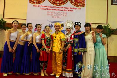 特别值得一提的是,此次演出的第一站印尼泗水国立大学,其曾于2010年由时任校长Haris Supratno率领代表团访问我校,在我院音乐厅由双方大学生艺术团共同上演了“泗水国立大学和华中师范大学联袂演出舞蹈晚会”, 泗水国立大学代表团用于此次表演的所有乐器也作为礼品全部赠送给我校。